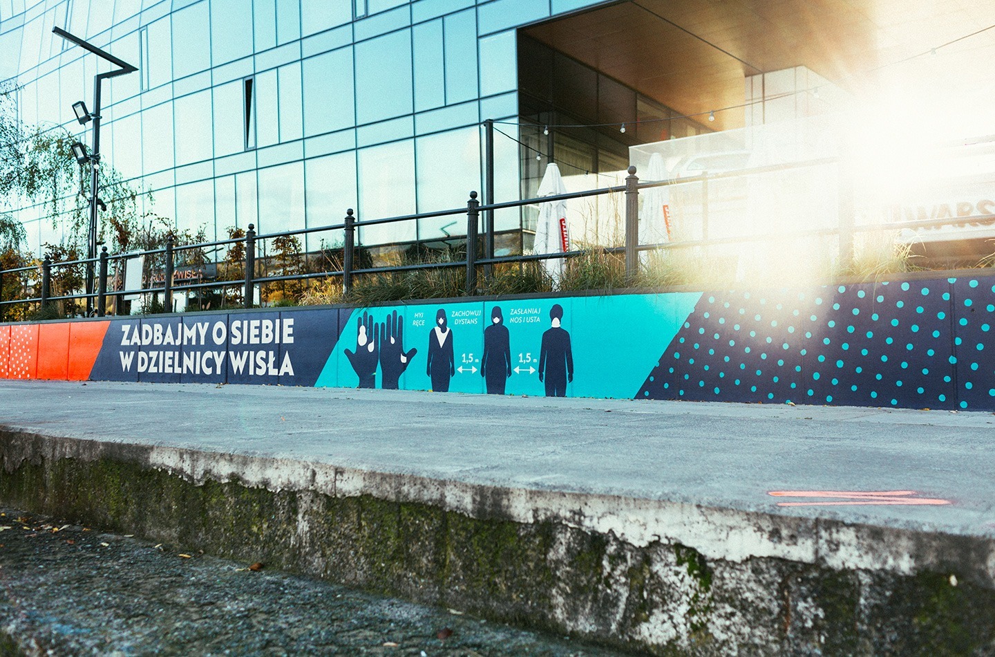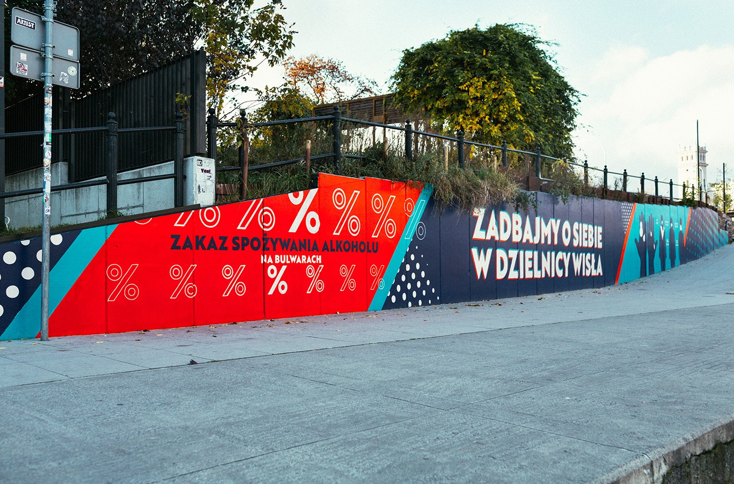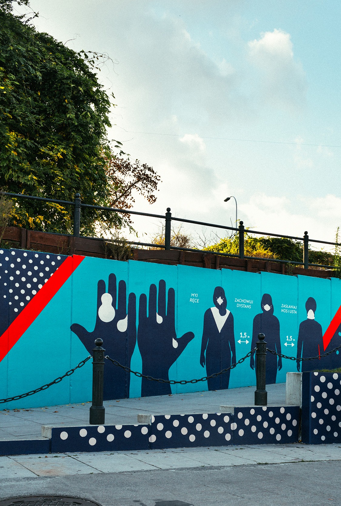 Podczas pandemii Covid-19 stworzyliśmy serię społecznych murali dla Miasta Stołecznego Warszawa - Dzielnica Wisła. Murale, namalowane wzdłuż rekreacyjnego brzegu Wisły, miały na celu przypominać spacerowiczom o zasadach bezpieczeństwa. W trakcie malowania również przestrzegaliśmy zasad bezpieczeństwa, dbając o zdrowie nasze i innych. Nasza praca nie tylko wzbogaciła estetykę miasta, ale także przyczyniła się do zwiększenia świadomości społecznej w trudnym czasie pandemii.